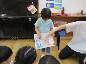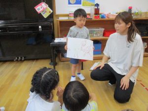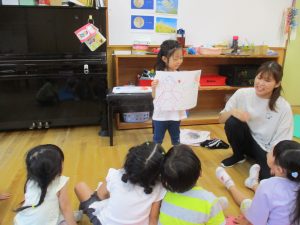 お友達の発表を聞く時は、静かに真剣に聞く姿が見られましたよ。