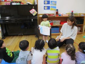自分が前に出て話す時は、少し緊張した様子でしたが上手にお話できていました☆