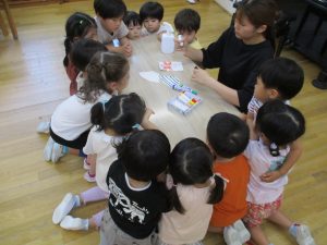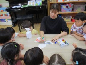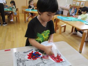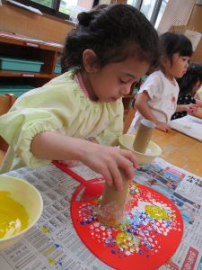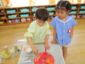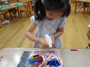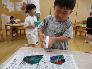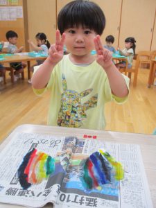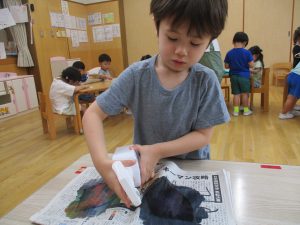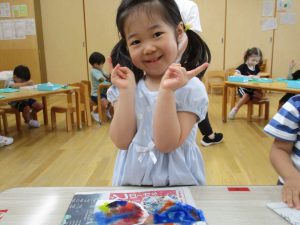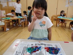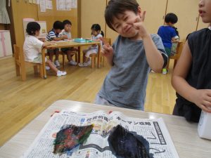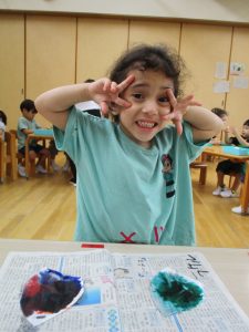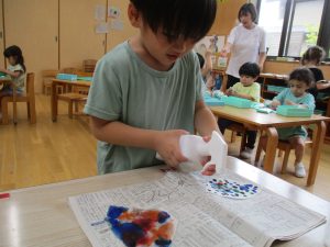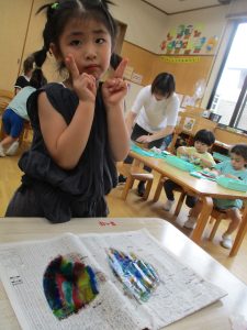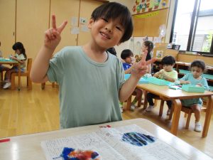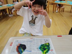できた模様を見て、「花火みたいで綺麗🎆」「爆発や!!💣」とそれぞれ感想を話す子もいました😆