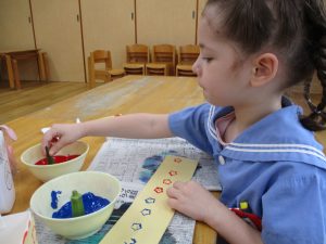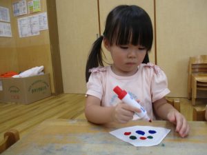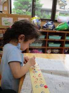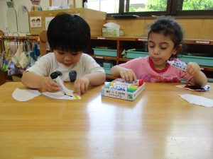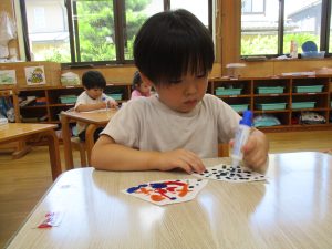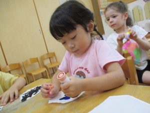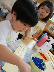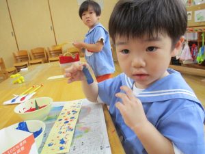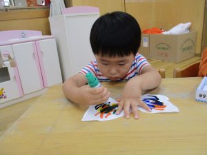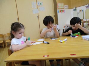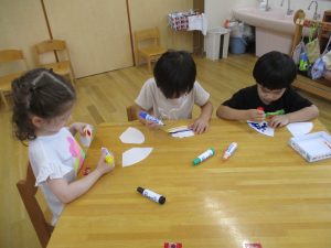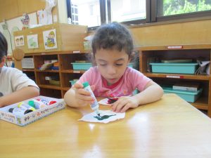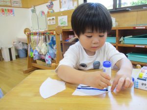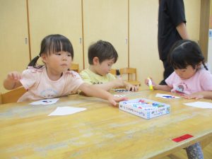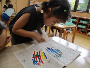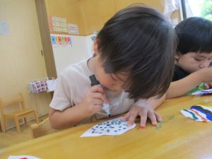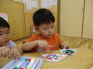 水性ペンを使えるのが嬉しいようで、黙々と描いていく子どもたち。