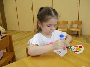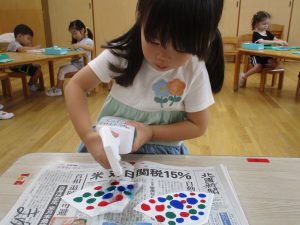 とんぼのハガキ製作では、コーヒーフィルターに水性ぺンで好きな模様を描きました。