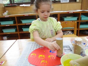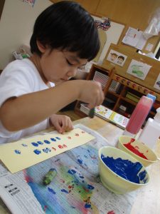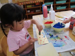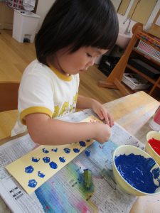 ☆小物入れでは、オクラのスタンプをしてお星さまをたくさん作りました。
