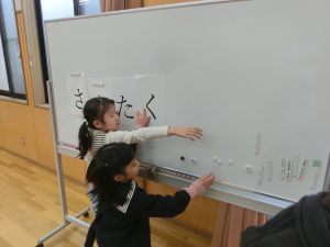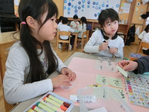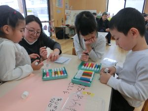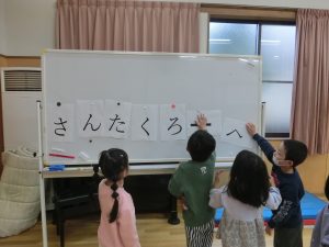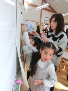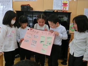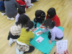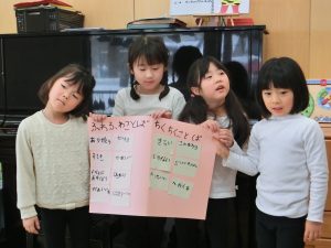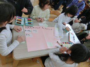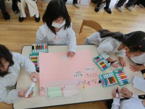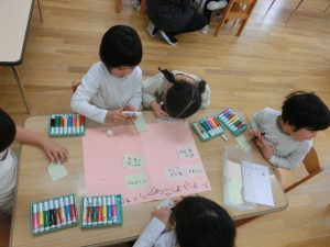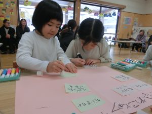 グループのお友達と一緒に考えながらたくさんの言葉を思いついて書いていました。