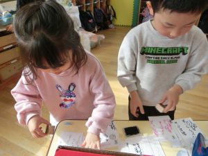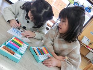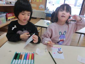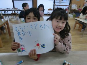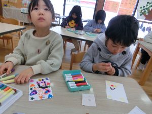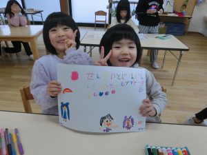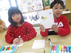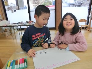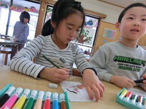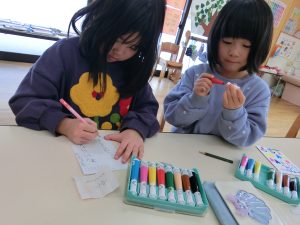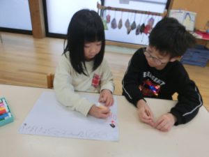 最初は、一人ずつ考えて描きましたが、2回目はお友達とペアになって