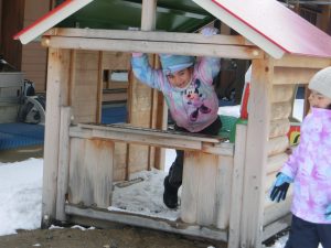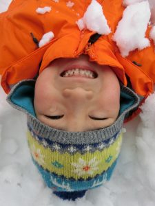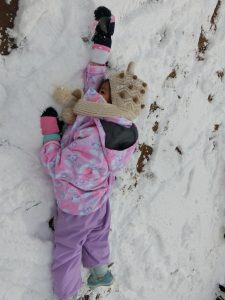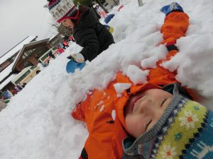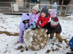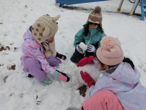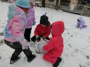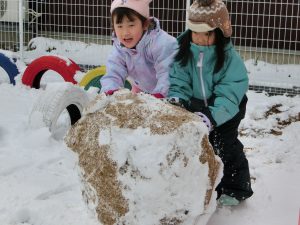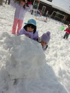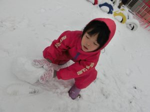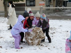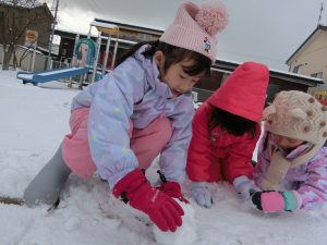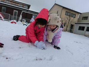 雪の中に転がったり、お友達と雪だるまを作ったり