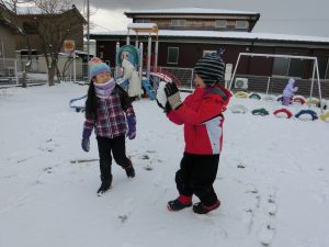 雪がたくさん積もった日に、みんなが楽しみにしていた雪遊びをしました!