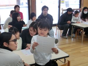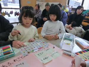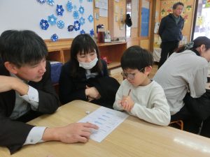 最後は、おうちの方と子どもたちでふわふわ言葉を書き合って