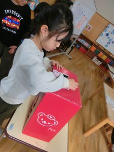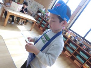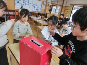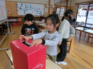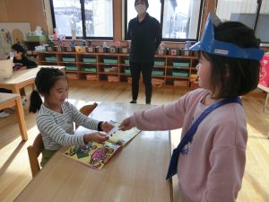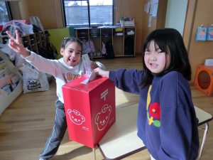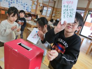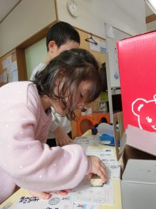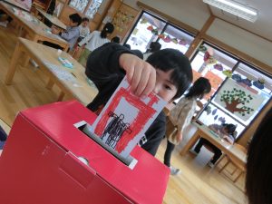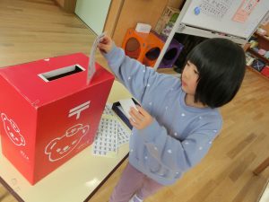 お当番さんが郵便屋さんになって、消印スタンプを押して