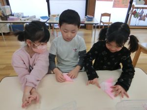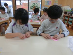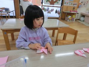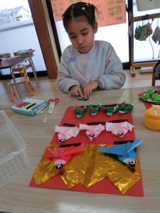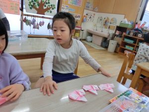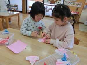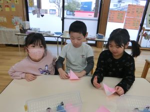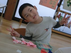 お友達と教え合いながら最後まで頑張って折りましたよ(*^-^*)