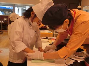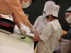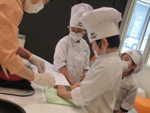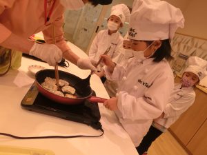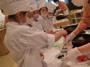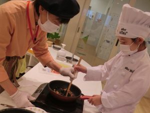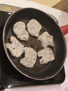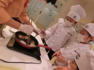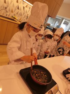クッキングでは、ひじきハンバーグや海藻サラダ、わかめご飯などの海藻類を使ったメニューを作りました!