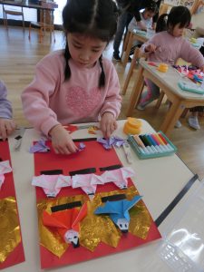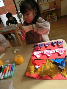 10体全部折り紙で折るので3日間かかって少し大変な部分もありましたが
