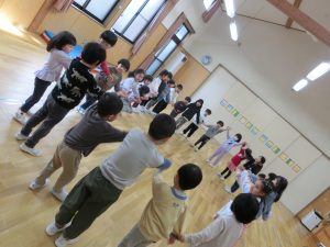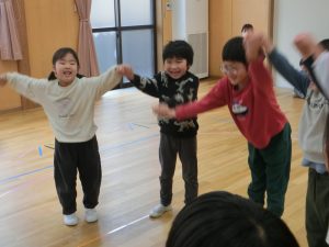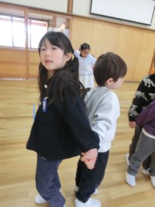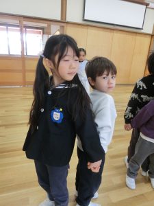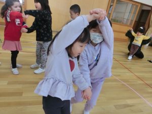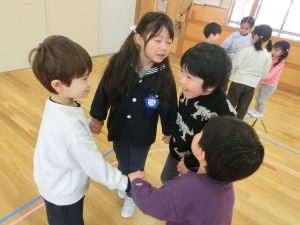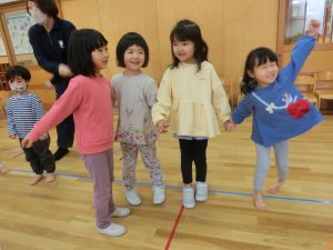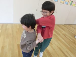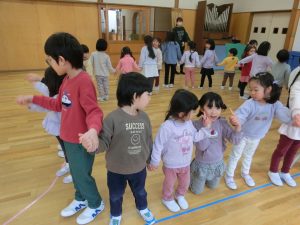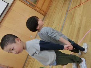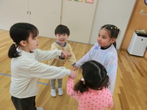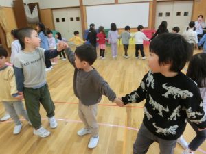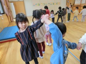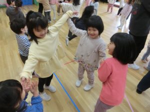 赤組さんとの交流で一緒になべなべそこぬけをして遊びました。