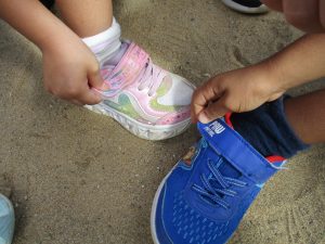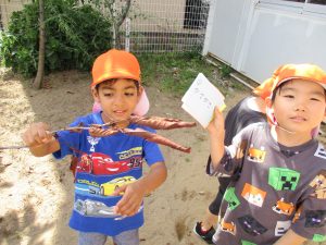 暑い日が続いたり梅雨の時期に入り、中々園庭で遊ぶことが難しかった6月でしたが、暑さに気を付け、水分を十分に補給しながら遊びました☆遊具で思い切り身体を動かしたり、虫探しに夢中な子どもたち!砂場では、泥を作って泥団子を作ったり、ケーキや飲み物に見立ててお店屋さんごっこを楽しみました♪梅雨の時期には、長靴を履いて雨上がりの園庭に出て遊びました!大きな水たまりがあったり、ナメクジがたくさんいたりと、普段の園庭とは違った楽しみ方をしました(^▽^)