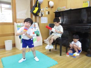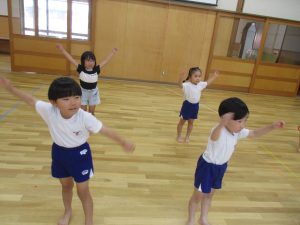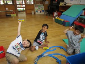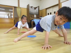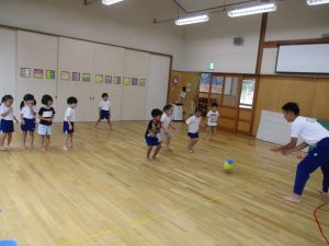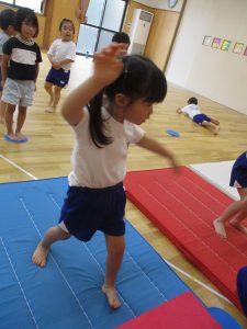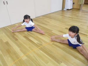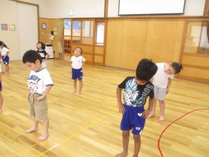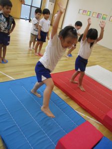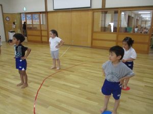 今月の体操も、体操やマラソン、縄跳びに鉄棒と、たくさん頑張りました!!運動会に向けて、いつもの体操にプラスして違う体操を教えてもらったり、縄跳びや鉄棒も難しい技に挑戦したりと、レベルアップした7月でした☆