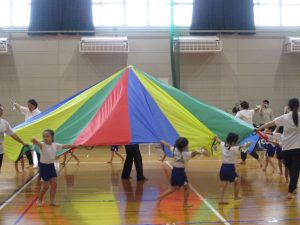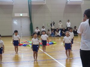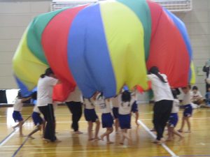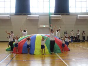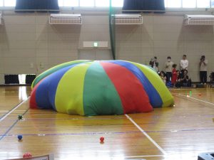 2学期が始まり、運動会に向けた練習が本格的にスタート!夏休みから少しずつ触れてきたパラバルーンは、子どもたちもとっても大好きで、楽しんで練習に参加していました🎵赤組さんと競技の見せ合いっこをしたり、青組さんの組体操を見せてもらったり、少しずつ近づいてくる運動会に期待を膨らませています😆ドキドキワクワクでいっぱいの子どもたちです!!