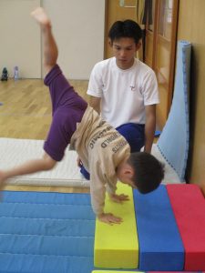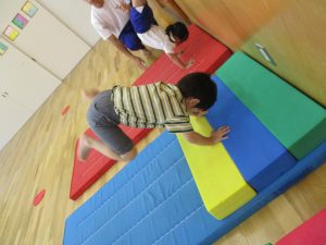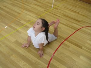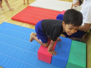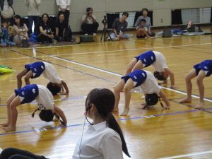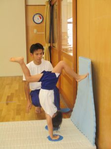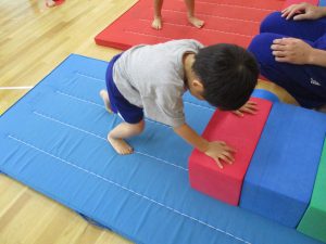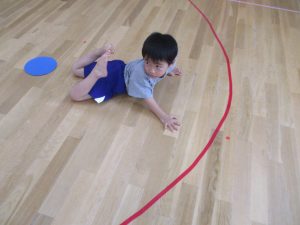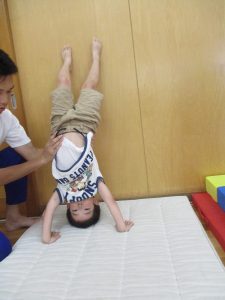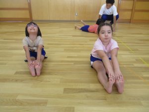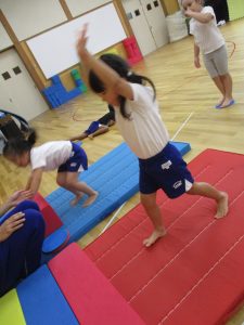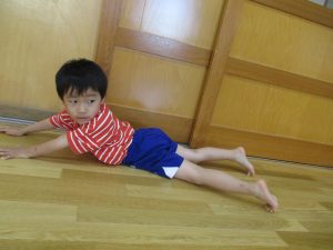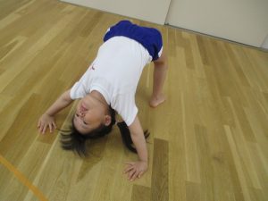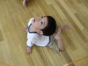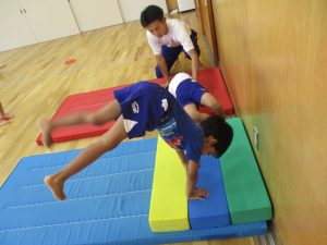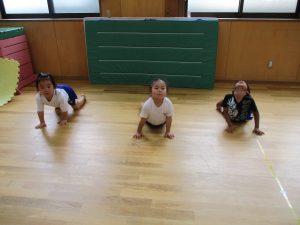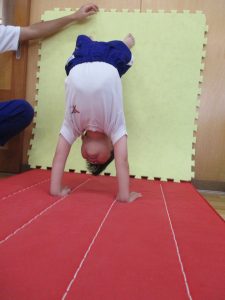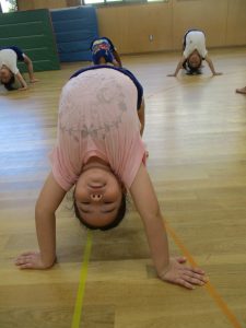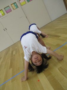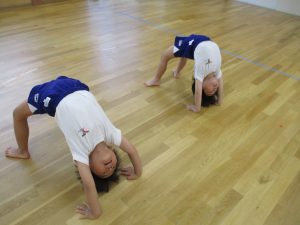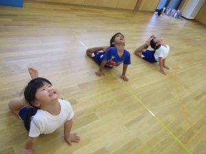 しっかり頭も浮かせて、ブリッジができるようになった黄組さん。今は、ブリッジ歩きに挑戦しています。