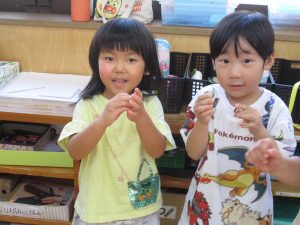 楽しいと英語をちょっと口に出してみようかな、やってみようかなという子どもたちの好奇心がくすぐられるようです(*^^*)