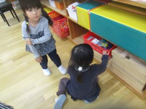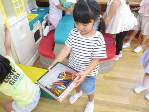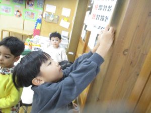 いろんなお友達と関わってほしいので、毎日席はくじ引きで決めています。子どもたちは、「おみくじ」と呼んでいます(*^^*)