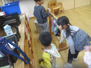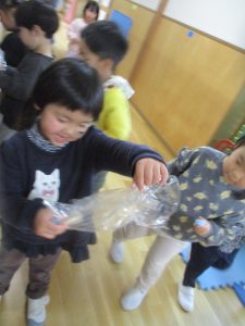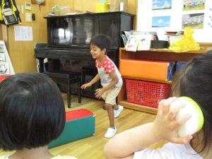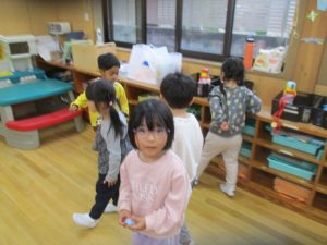 勝ち負けのある遊びでは、負けることの悔しさと、勝つことの嬉しさを味わいながら、負けてもうゲームに参加したくない気持ちになっているお友だちに、「次は勝てるかもしれないよ!」と優しく声をかける姿も見られました!ゲームを通して、微笑ましいやり取りがたくさん見られました♪