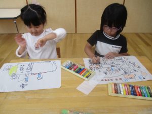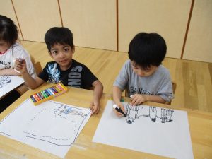 遠足の後も、幼稚園で絵を描きました✨みんなでお弁当を食べたことや、遊具で遊んだことなど、風景を思い出しながら描きました!お部屋に飾ってお友だちと鑑賞会も楽しんでいましたよ🎶