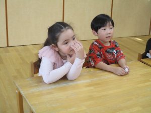 礼拝の時間。「神は愛です」の聖句の意味。「愛ってなんだ?」ということに触れてきた1月。この日も子どもたちから、いろんな言葉が聞かれ、みんなで考えることができました。
