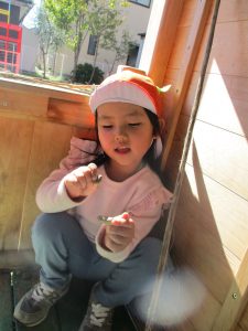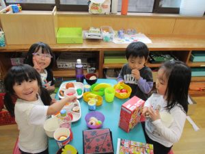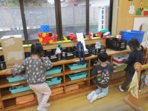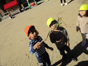 日を追うごとに寒さも増していますが、子どもは寒さに強いものです。晴れた日は、園庭で鬼ごっこをしたり、砂場でごっこ遊びをしたりと、元気いっぱい遊んでいます。