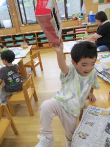 この日お休みしていたお友達も、後日、凧を作って、みんなと一緒に凧揚げを楽しみましたよ(*^^*)