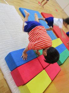 運動会が終ってからは、逆立ちとボールを使った遊びをたくさんしました!逆立ちでは、少しずつ足を高く上げられたり、長い間逆立ちの状態を続けることが出来たりと、レベルアップしていきました✨運動会でたくさん練習したことで、準備体操の開脚やブリッジも上手になり、成長を感じます🙌