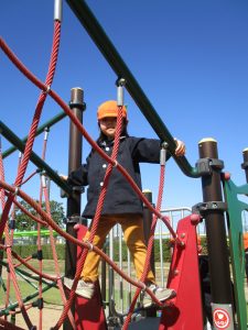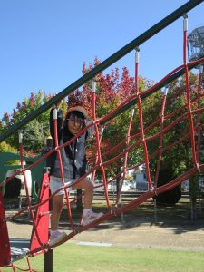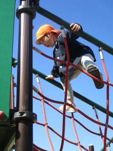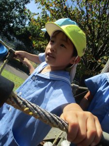 鉄棒にくくりつけて、「見て~!あがったよ!」