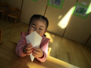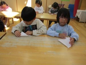 ひとつひとつはそんなに難しい折り方はありませんでしたが、よく見て聞いていないと、折り進めることができません。