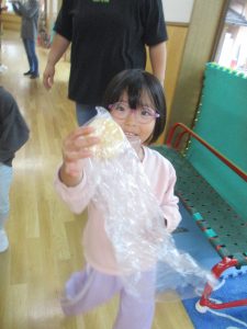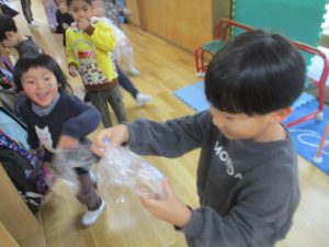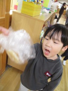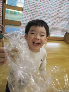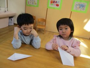 「これ、ほんとにとぶのかな~?」と園庭に向かいながら、つぶやいていました(*^^*)