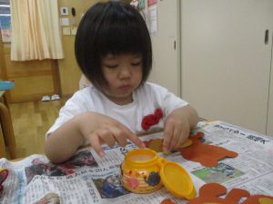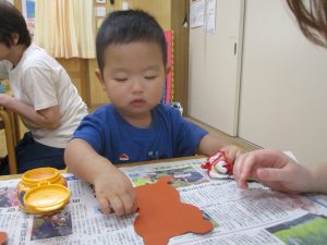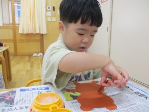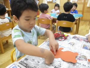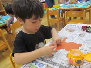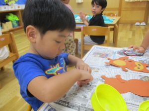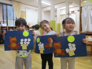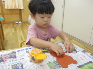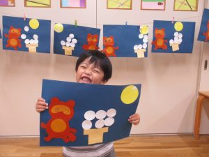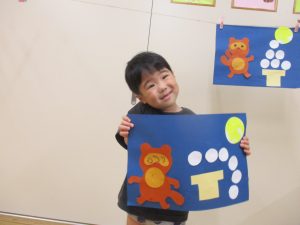たぬきの手足を自分でのり付けしたり、顔を描いたりしましたよ🌙⭐