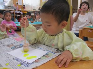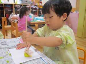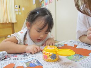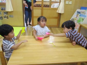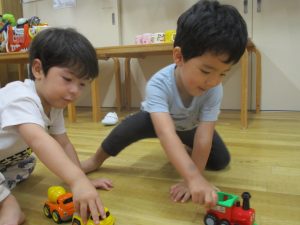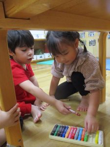 落ちてしまったクレヨンを「どうぞ!」と一緒に拾ってあげる姿が素敵ですね⭐