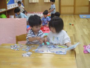 「おでこ」では、「どうしたらくっつくの~?」と試行錯誤していましたよ!