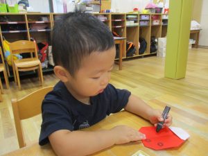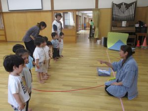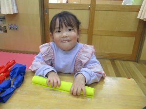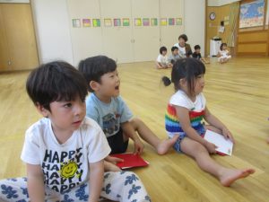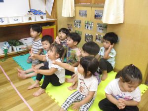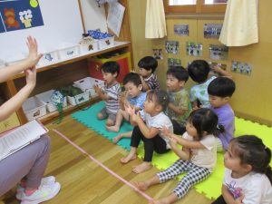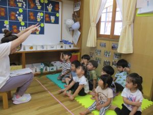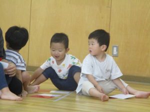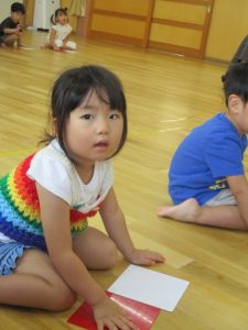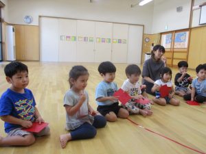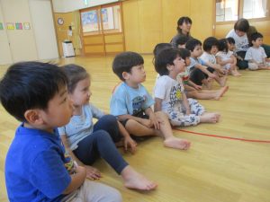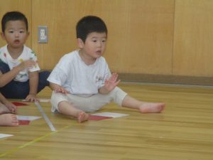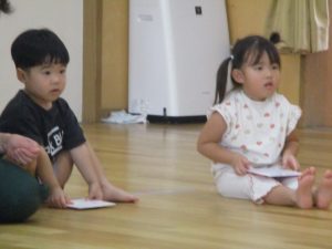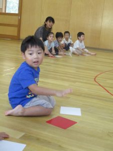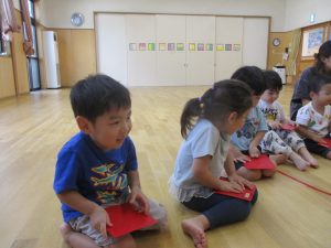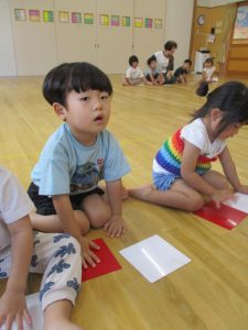 ピアノの音に合わせて、「あか。」「しろ。」と言いながらリズム遊びもしましたよ♪