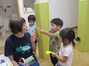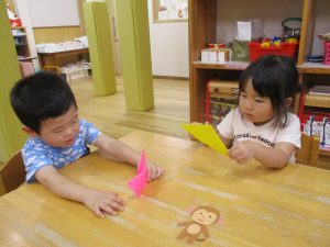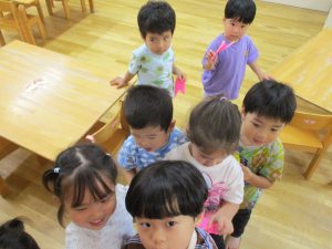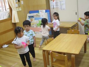 2つのチームに分かれてゲームをしたのですが、「頑張れ!」という声がお友達に届いていたみたいです💗