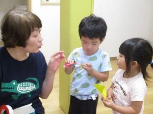 「くっついた!」とお尻やお腹をくっつけて楽しみましたよ!