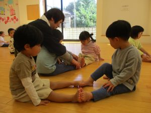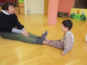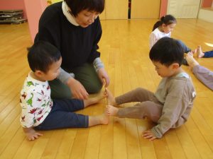「あし!」では、「お友だちの足!」と言って合わせたり、「先生より足おっきいし!!」と大きさ比べをしました!