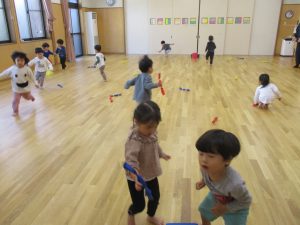 運動会のリハーサル週に桜木体育館のホールで楽しく遊びました!
