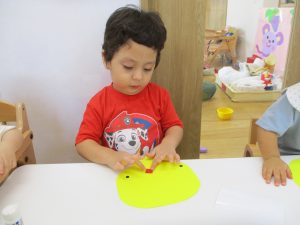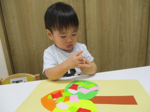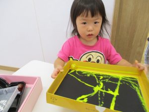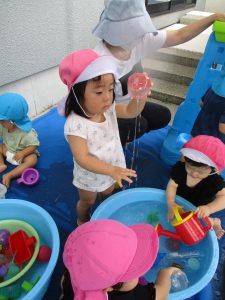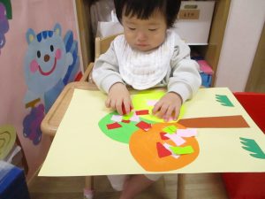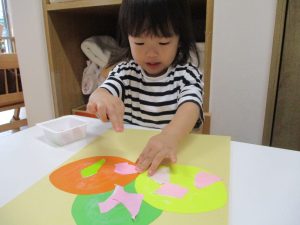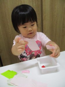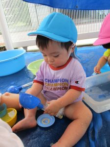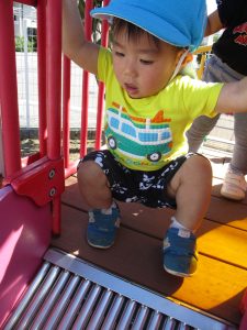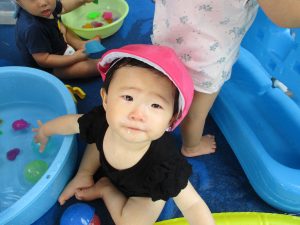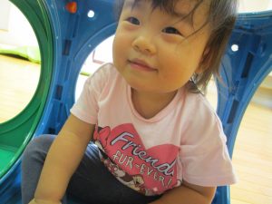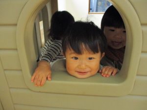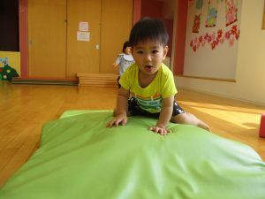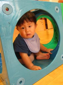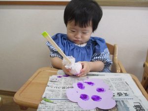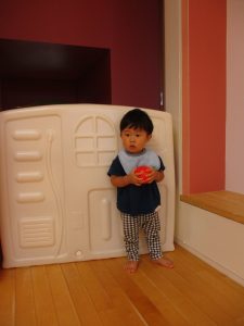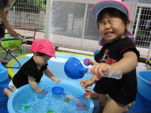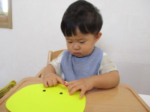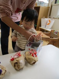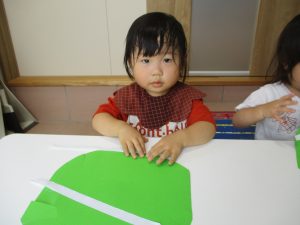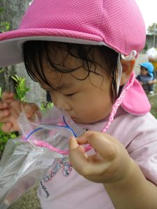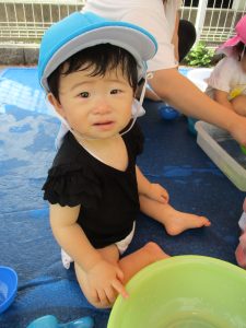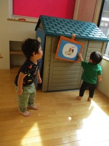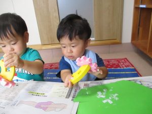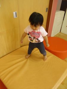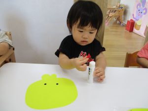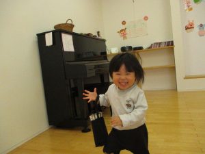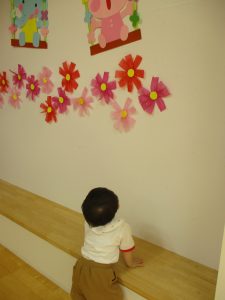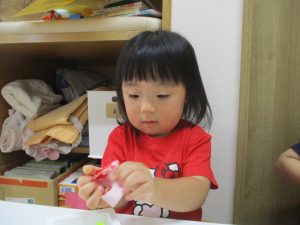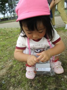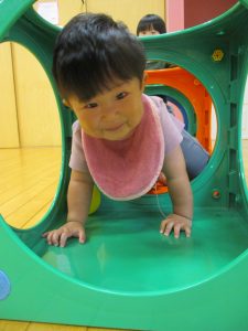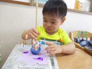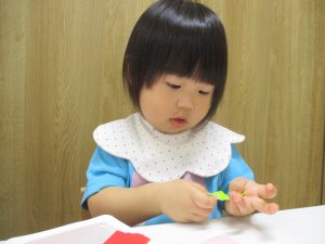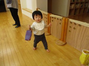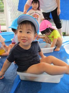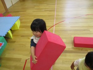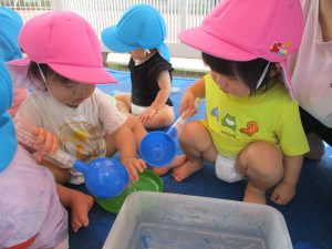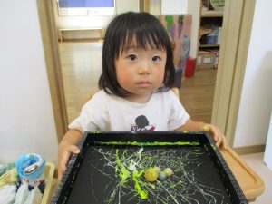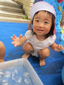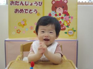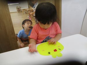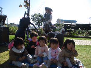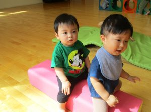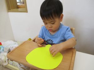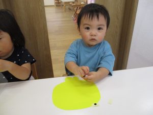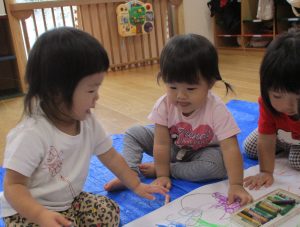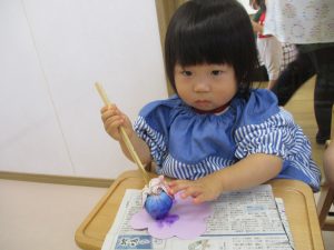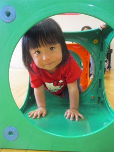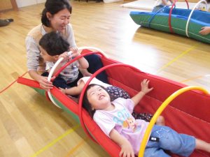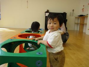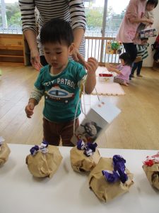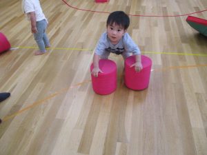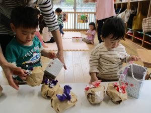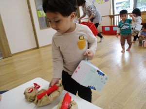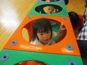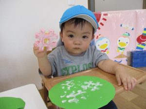 風船の口を結ばずに放し、ブーっっと風船が不安定な動きで飛んでいく姿に大笑いする子とびっくりしている子と色々でしたが、楽しい風船遊びにいい笑顔がたくさん見れました。