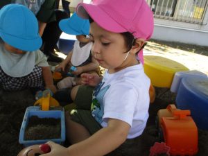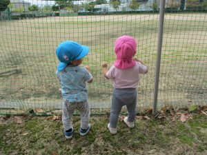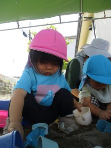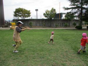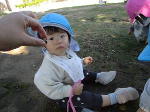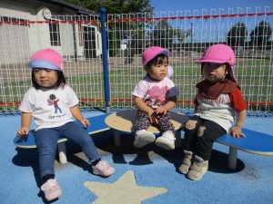 晴れた日には戸外でおやつを食べたり、体を動かしたりと元気にのんびり遊んでいます。