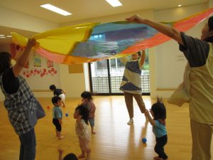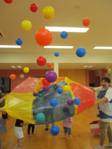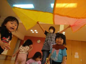 パラバルーンをなびかせて風やパラバルーンの感触を楽しみました。