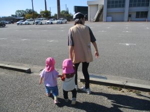 友だちと手をつないで歩く練習も少しずつ行っています。
