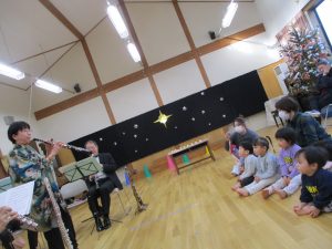 初めての雰囲気に驚きながらも、綺麗な音色に包まれて、音のなる方に楽器や奏者の方々にくぎ付けの子どもたちでした。