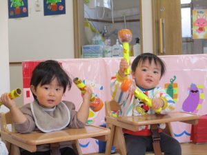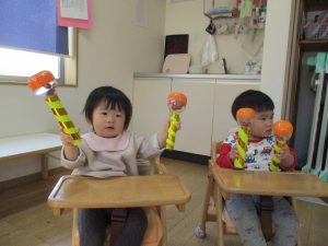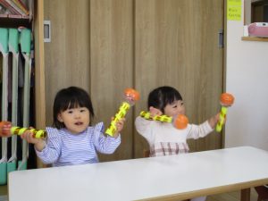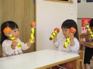 みんなが大好きなドングリマラカスを使ってぴっぴ組さんの演奏会も楽しみました。