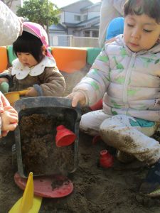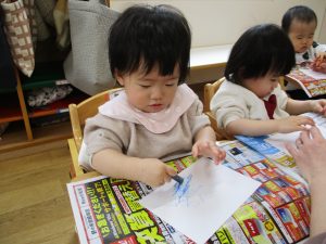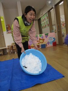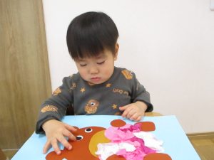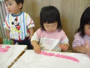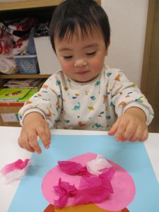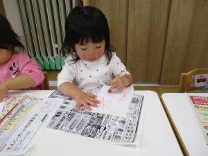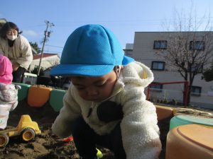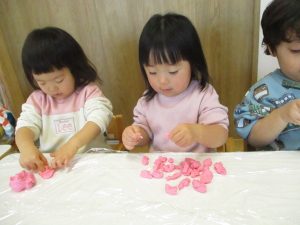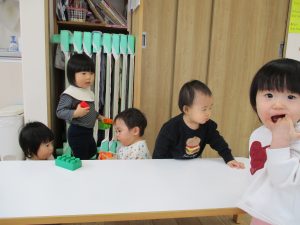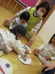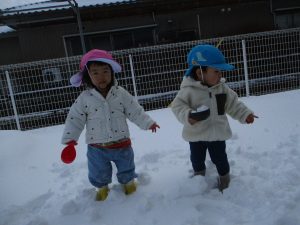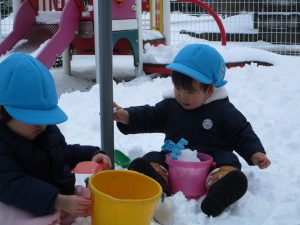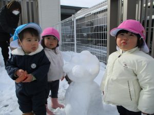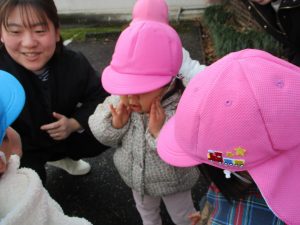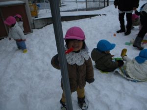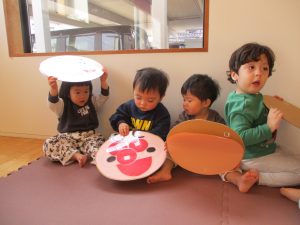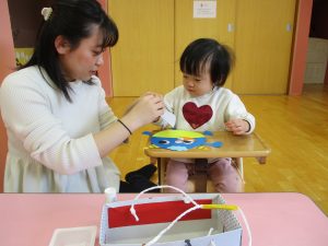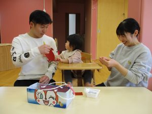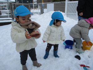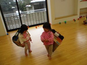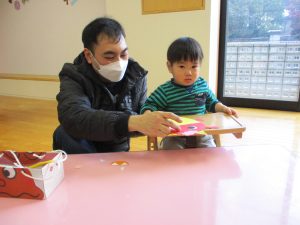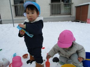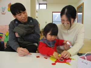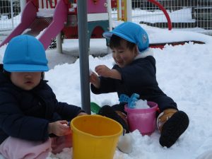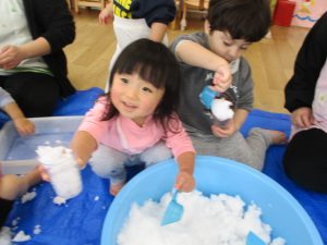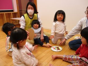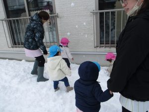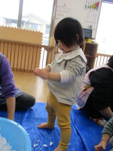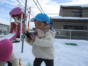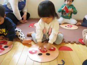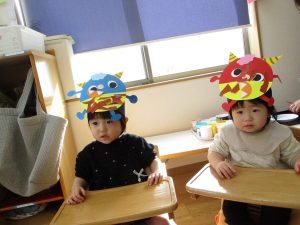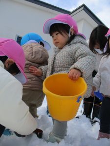 2月は伝統行事の節分の豆まきや雪遊び、晴れた日には戸外遊びなど季節らしい遊びをしたり、手先を使った遊びなどを中心に遊びました。
