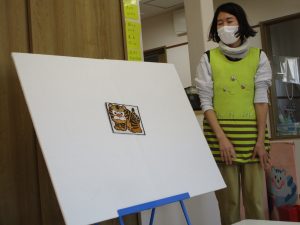 お家の方と一緒に作ったオニのお面。表情豊かでとても愛嬌のあるお面に仕上がりました。