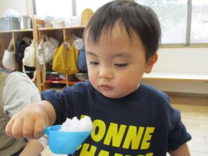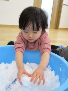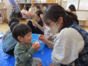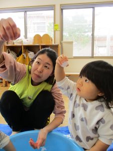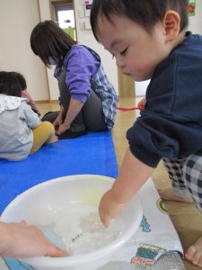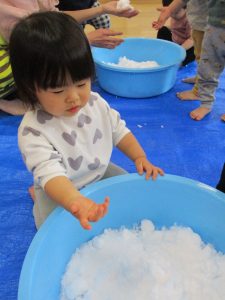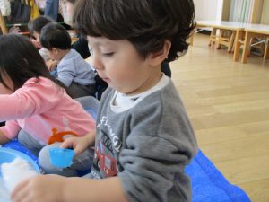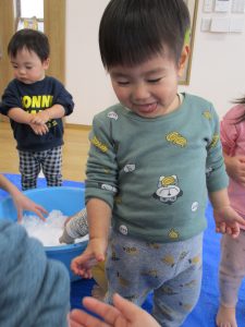 苦手だった感触も今回平気になっていたり、遊びの中で少し楽しめたりと、どんどん成長しているみんなです。
