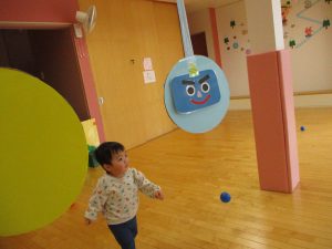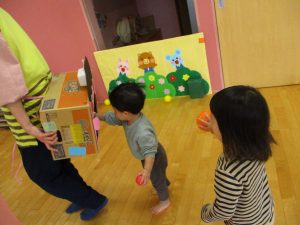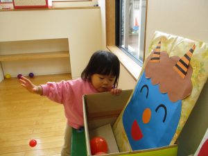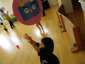 オニのイラストにボールを投げて的当てや玉入れを楽しみました。